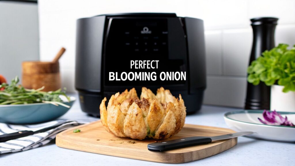 Alright, your onion is cut, coated, and ready for the main event. This is where the air fryer truly shines, transforming that breaded masterpiece into the crispy, golden appetizer you've been waiting for—all without the deep-frying mess.