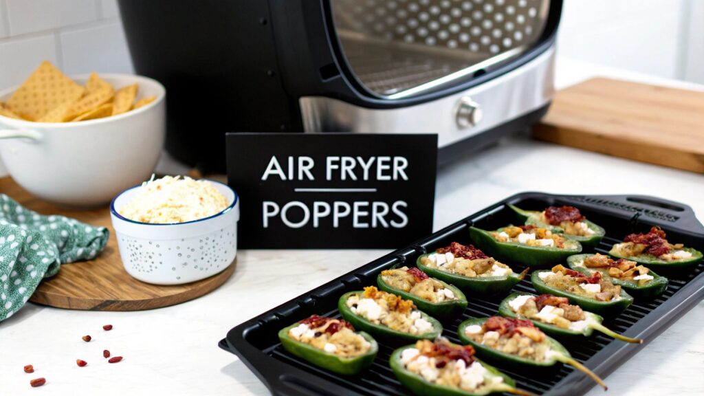 This speed is exactly why the air fryer is king for a snack like this. Most recipes for air fryer jalapeno poppers clock in at a mere 6-8 minutes, which can slash traditional oven time by up to 75%. That kind of efficiency is a game-changer for quick appetizers, fueling a market worth over $426 million in North America in 2024. If you want to see just how fast you can make them, you can find great tips for making quick poppers here.
