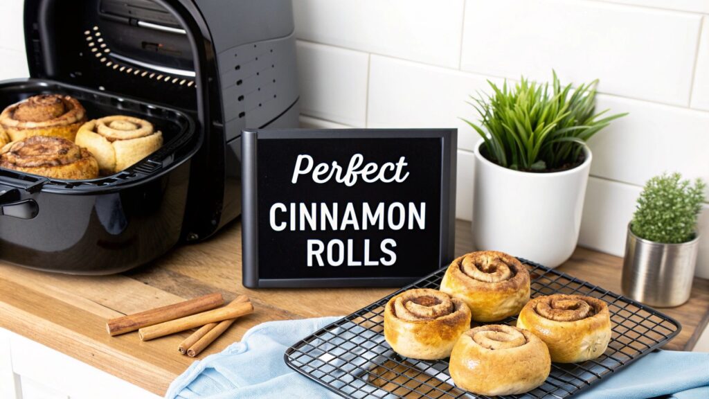 This isn’t just an estimate; it's a fact. Most air fryers will cook canned cinnamon rolls to perfection in just 6-8 minutes at 350°F. Compare that to the typical 18-20 minutes in a standard oven, plus another 10-15 minutes just for it to preheat. The time savings are huge. You can find more about these impressive cooking time comparisons from recipe developers who have this down to a science.