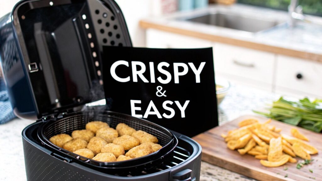 Let's get one thing straight: cooking frozen hash browns in an air fryer is a total game-changer for breakfast. We're talking perfectly crispy, golden-brown potatoes in just 10-15 minutes at around 375-400°F (190-200°C). All you have to do is flip them once. The constantly circulating hot air does all the heavy lifting, giving you that incredible deep-fried texture without all the oil.